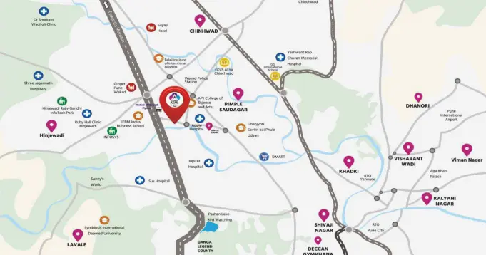 Wakad is one of Pune’s fastest-growing residential hubs, offering unmatched connectivity to Hinjewadi, Baner, and Pimple Saudagar, along with close access to IT parks, reputed schools, hospitals, shopping malls, and entertainment hubs. At Ganga Asmi, every essential is just minutes away.