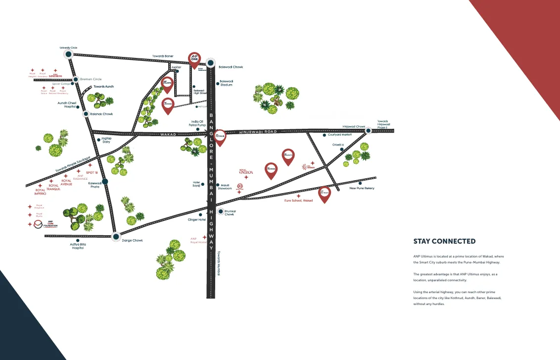 Strategically located near Ranjai Hotel, Wakad Bridge, ANP Ultimus ensures seamless connectivity to major hotspots: